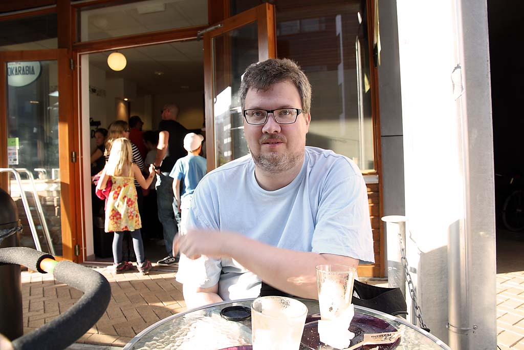 Mom and dad are sitting and enjoying a nice fika at the cafe next to Turning Torso. Worth a visit if you are nearby.